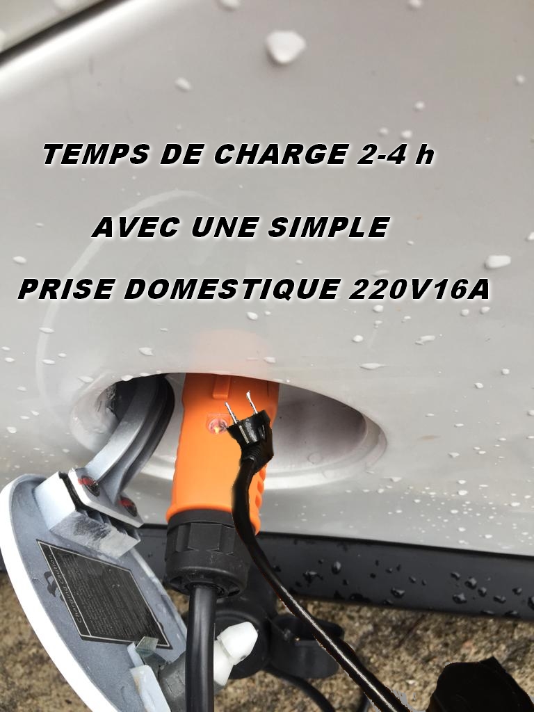 • CHARGE SUR SECTEUR PRISE DOMESTIQUE 220 V 16 A " Pas de tracas pour trouver une prise compatible tout est fait pour vous faciliter la vie... Toutes les voitures se rechargent sur une prise de courant 220 Volts domestique